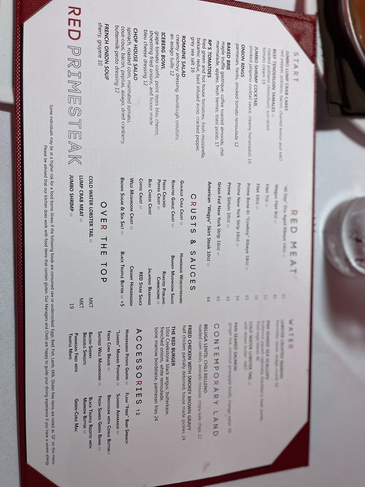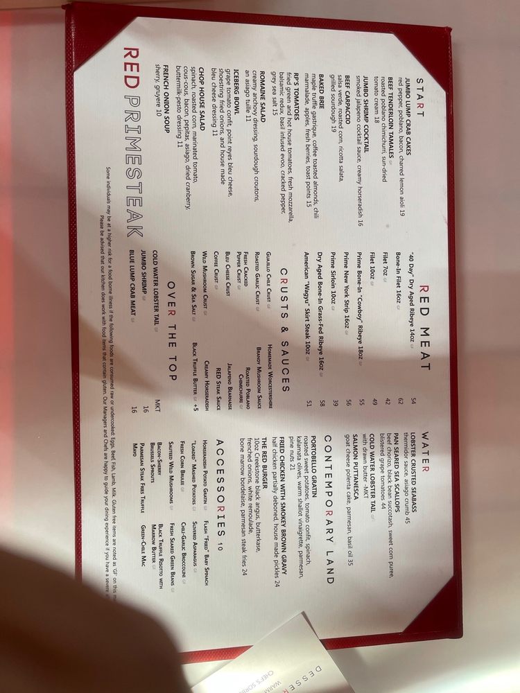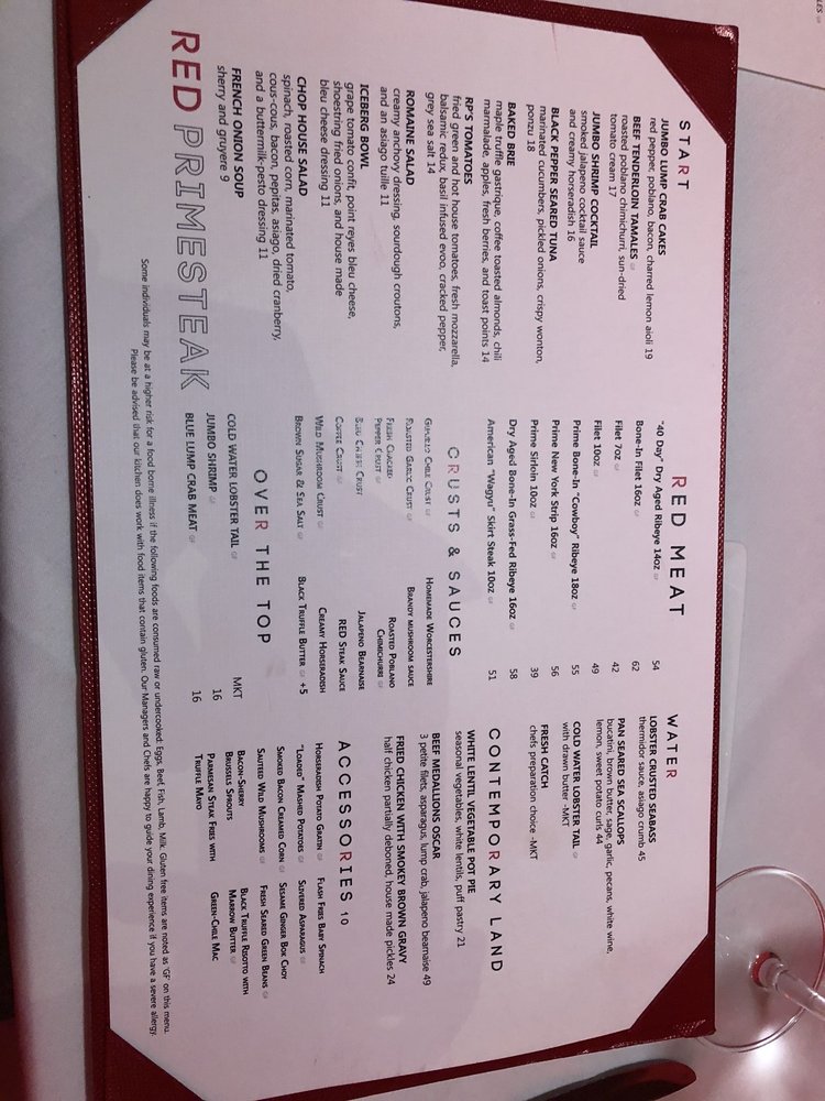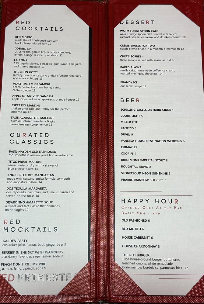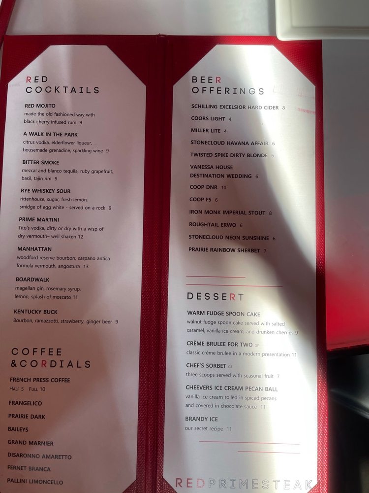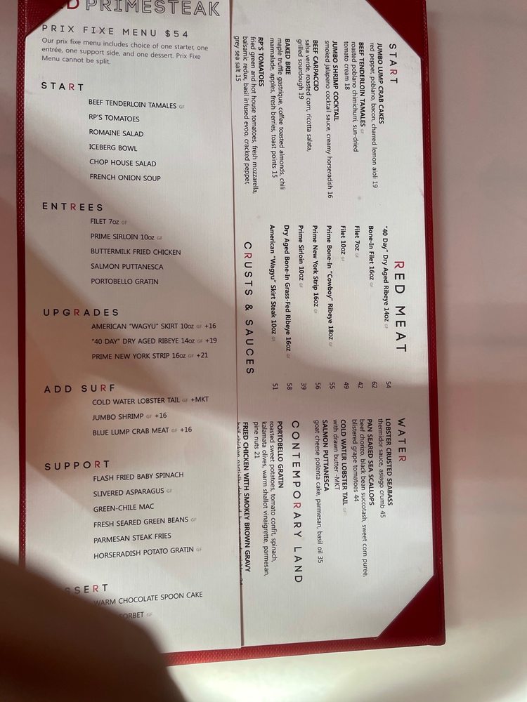 Red PrimeSteak, a trendy and upscale steakhouse located in Oklahoma City, offers a diverse menu with many vegetarian options. The restaurant provides a welcoming and stylish atmosphere, perfect for groups and special occasions. Customer reviews rave about the top-notch service and the exceptional quality of the food, especially the perfectly cooked steaks and delicious cocktails. The prix fixe menu is a popular choice, allowing diners to sample a variety of dishes at a reasonable price. The restaurant's modern-industrial vibe, highlighted by red accents, adds to the unique dining experience. Whether you're looking for a romantic date night or a celebration with friends, Red PrimeSteak promises a memorable and satisfying meal.